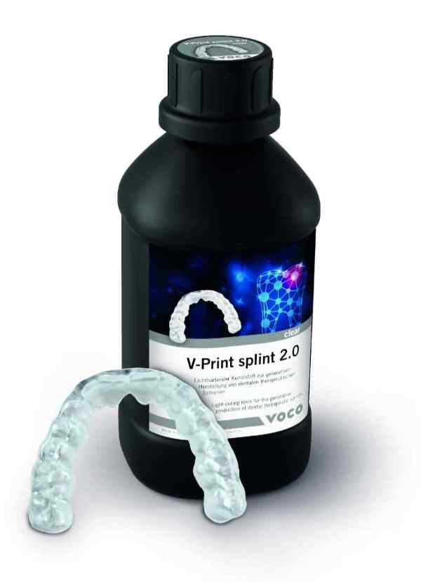 Mit V-Print splint 2.0 erweitert VOCO die Produktlinie um ein weiteres innovatives Druckharz. Indiziert sind therapeutische und Bleaching-Schienen sowie Hilfs- und Funktionsteile die Diagnose betreffend.