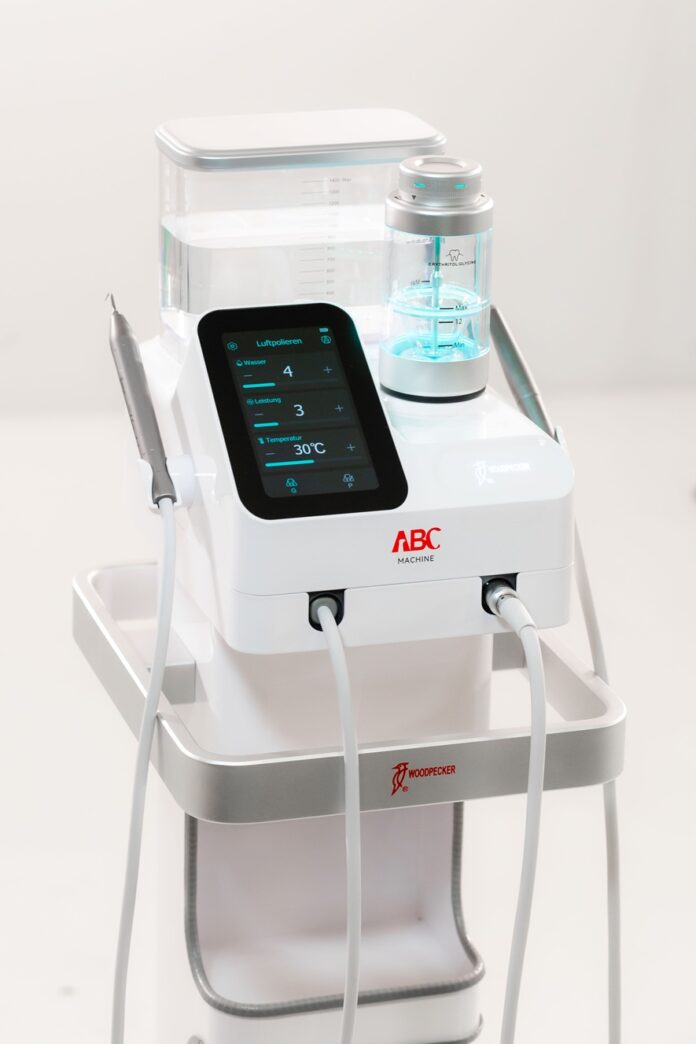 In der Anwendung deckt die ABC MACHINE das gesamte Prophylaxe-Spektrum ab: von supra- und subgingivalem Scaling über Ultraschallanwendungen bis hin zur schonenden Implantatreinigung. Damit eignet sich das System sowohl für standardisierte Prophylaxeabläufe als auch für anspruchsvollere Behandlungssituationen.