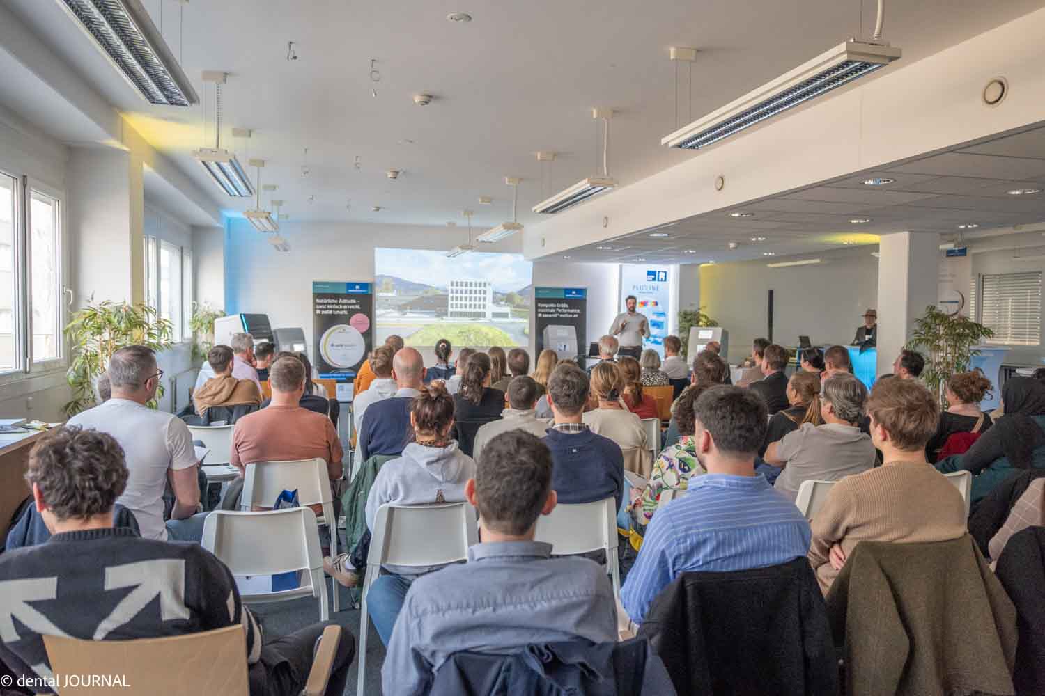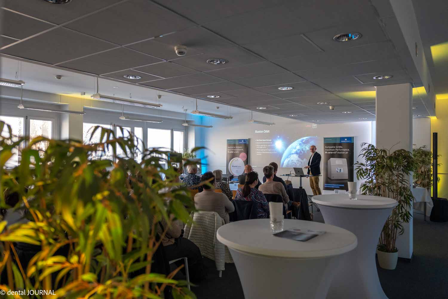 Bevor der Abend in gemütlichere Bahnen lenkte, drehte Robert Rosiak den Spieß noch einmal um: In einem spontanen Quiz konnten aufmerksame Zuhörer fünf Alu-Trinkflaschen von Amann Girrbach gewinnen — ein spielerischer Abschluss, der nochmal für Stimmung sorgte. Danach lud ein großzügiges Catering zum Bleiben ein. Die meisten blieben gerne: Gespräche mit den Referenten, Netzwerken mit Kollegen, Austausch über das Gehörte — all das zog sich bis weit nach 22:00 Uhr hin. Vielleicht ein Grund, beim nächsten Mal selbst dabei zu sein.