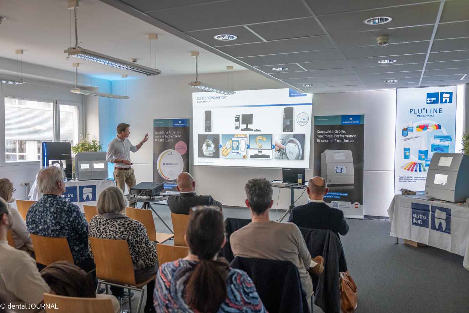 Michael Kohnen von exocad präsentierte mit dem neuen Release „Chemnitz“ (DentalCAD 3.3) keine kleine Wartungsroutine, sondern ein echtes Update mit Substanz: spürbare Verbesserungen im Implant Module, neue Workflows für Split-Prothesen und KI-gestütztes Multi-Unit-Design. Wer dabei war, weiß jetzt, wohin die Reise geht — und hat einen klaren Vorsprung. Für die vielleicht provokanteste Stunde des Abends sorgte zum Schluß der Vortrag von Tom Vaskovich, Leiter der Zahnklinik Wien. Sein Ansatz ist radikal konsequent: kein physisches Meistermodell, kein Fräsen von Einzelblöcken, kein aufwendiges Schichten — stattdessen ausschließlich digitale Scans, virtuelle Modelle und validierbare Prozesse von Amann Girrbach. Sein 33-köpfiges Team setzt fast ausschließlich auf Zirkonoxid in Rondenform, und die Ceramill Matic läuft in der Klinik nahezu rund um die Uhr. Die Reaktionen im Publikum? Verblüffung, Diskussion, Inspiration — pure Energie im Saal.