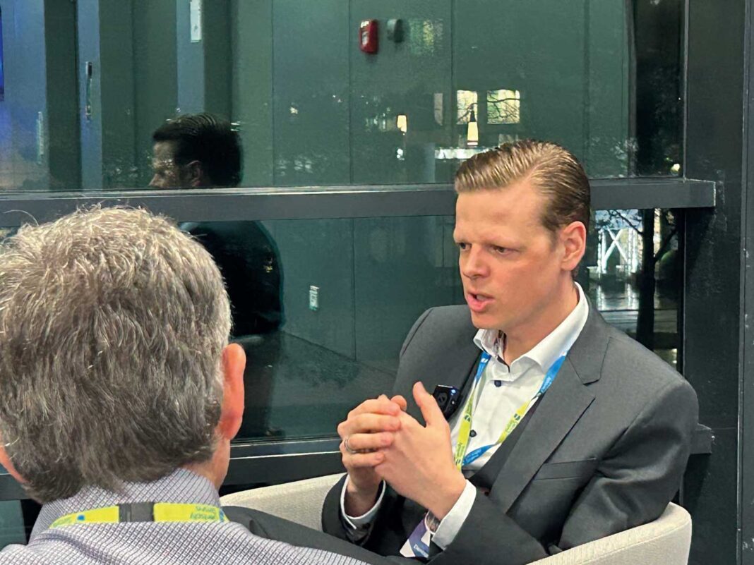 Wolf-Dieter Perlitz, Senior Director und Head of DS Core bei Dentsply Sirona im Gespräch mit Oliver Rohkamm, Chefredakteur dental JOURNAL auf der DS World in Bonn 2026